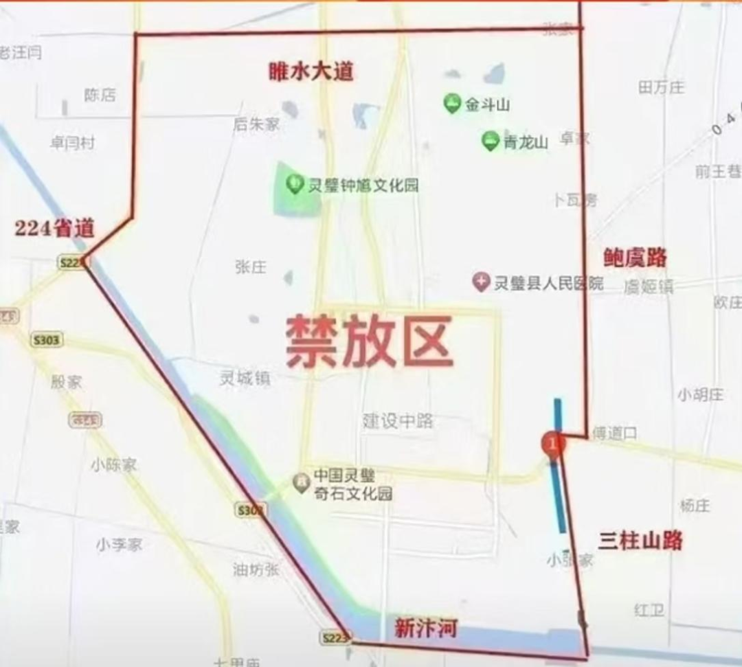 灵璧县:灵璧县南至新汴河,西至224省道,北至睢水大道,东至三注山路和鲍虞路全年全时段禁止销售和燃放烟花爆竹。