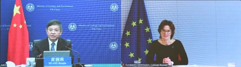 生态环境部部长黄润秋视频会见欧盟委员会环境、水资源韧性和竞争力循环经济委员罗斯瓦尔