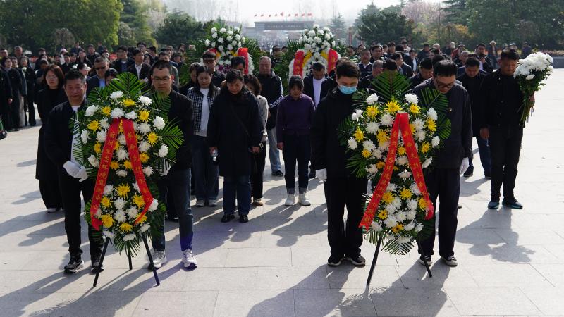 松柏苍翠寄哀思,丰碑巍峨映初心。在镌刻着邓小平同志“淮海战役烈士永垂不朽”金色大字的烈士纪念碑前,全体人员整齐肃立。祭扫仪式在雄壮的国歌声中拉开序幕,干部职工脱帽默哀,向为民族独立与人民解放事业英勇献身的革命先烈致以深切缅怀。随后,中心代表缓步敬献花篮,仔细整理挽联,全体人员依次绕行瞻仰纪念碑,在静默中追忆那段气壮山河的峥嵘岁月。