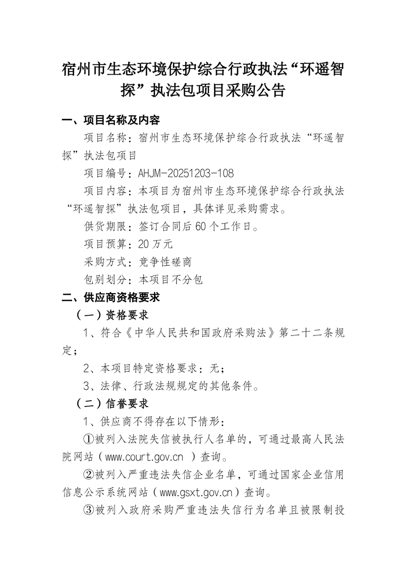 宿州市生态环境保护综合行政执法“环遥智探”执法包项目采购公告