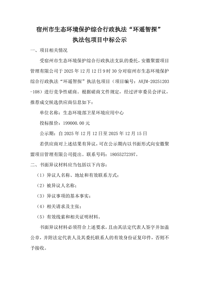 宿州市生态环境保护综合行政执法“环遥智探”执法包项目中标公示
