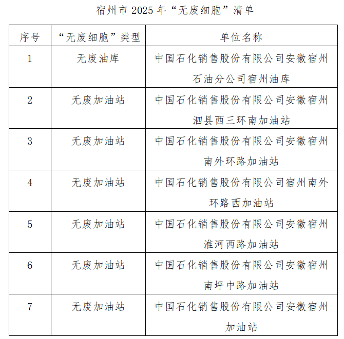 根据《安徽省“无废细胞”建设指引(试行)》、《宿州市“无废细胞”创建工作方案及评估细则》要求,现将宿州市2025年“无废细胞”名单予以公示,接受社会监督。如有异议,请在公示期内向市生态环境局反映。。